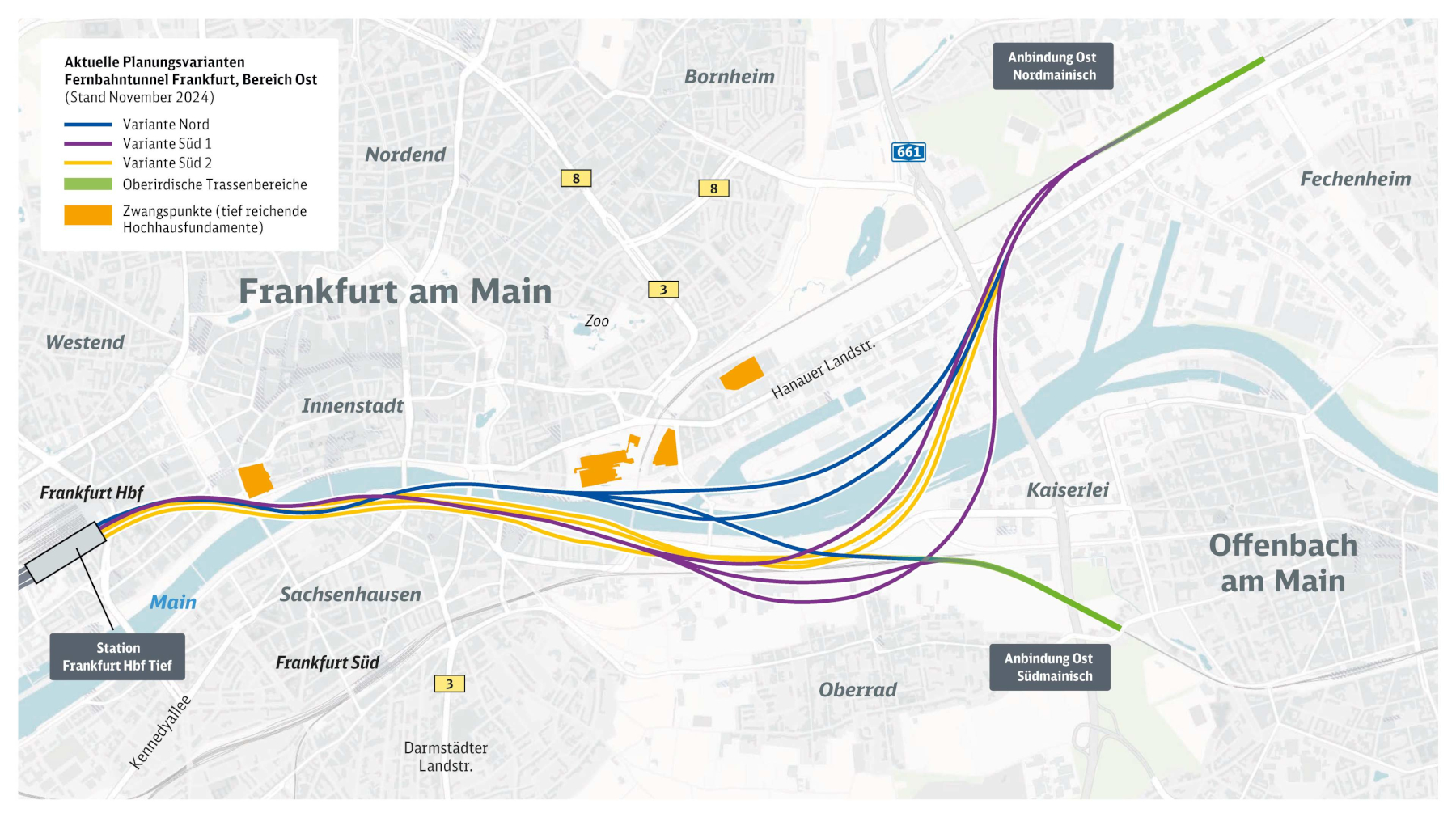 Verschaffen Sie sich einen anschaulichen Überblick über die verschiedenen Bestandteile des Fernbahntunnels als auch der ergänzenden oberirdischen Maßnahmen rund um den Frankfurter Hauptbahnhof und den Bahnhof Süd.